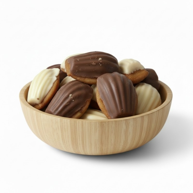 ASSORTIMENT de petites "MADELEINE BEBE" MELANGEES aux 3 chocolats (chocolat noir 70%, chocolat orange 35%, chocolat lait 29% ).