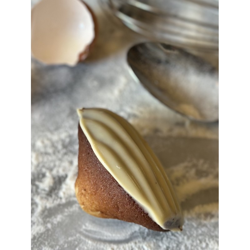 UNE GROSSE "MADELEINE BEBE" au chocolat blanc 35%.